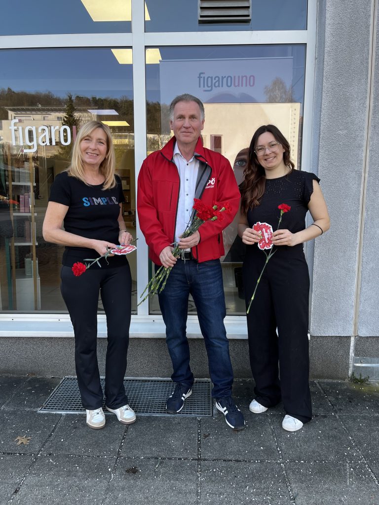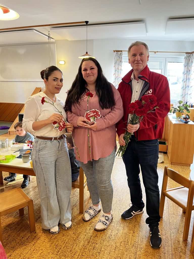 Anlässlich des Internationalen Frauentags am 8. März haben wir in Engerwitzdorf ein Zeichen der Anerkennung gesetzt: Als Parteivorsitzender war ich gemeinsam mit meinem Team unterwegs, um Beschäftigten in Bildungseinrichtungen sowie Mitarbeiterinnen und Mitarbeitern in Betrieben rote Nelken und Blumensamen zu überreichen.
